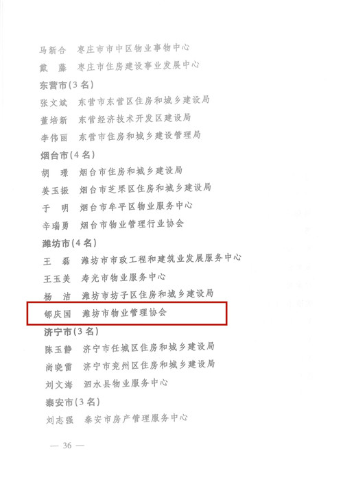 2019年,山東省住房和城鄉(xiāng)建設(shè)廳開展了物業(yè)服務(wù)行業(yè)文明創(chuàng)建“標(biāo)準(zhǔn)建設(shè)年”活動(dòng),為表?yè)P(yáng)鼓勵(lì)先進(jìn),發(fā)揮示范引領(lǐng)作用,激發(fā)創(chuàng)建工作熱情,經(jīng)逐級(jí)申報(bào)、審核、公示等程序,公管公司獲得以下省級(jí)榮譽(yù):濰坊昌大公共建筑物業(yè)管理有限公司榮獲“全省物業(yè)服務(wù)行業(yè)文明創(chuàng)建標(biāo)兵企業(yè)”榮譽(yù)稱號(hào);總經(jīng)理郇慶國(guó)兼濰坊市物業(yè)協(xié)會(huì)會(huì)長(zhǎng)榮 ......